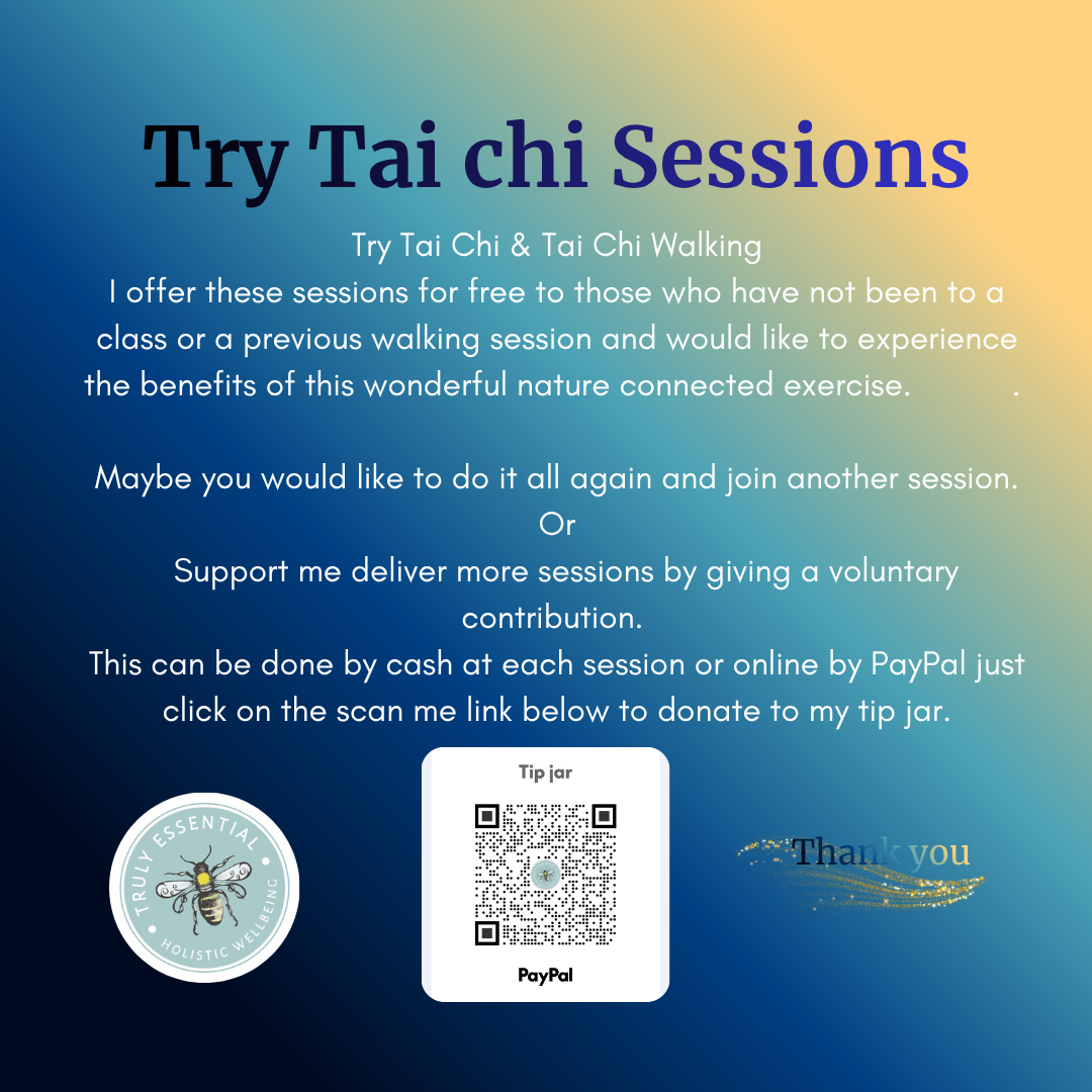 For walking with Tai Chi information, see the wellness walks or click on the booking button/walks top left of page to book your place or see more.